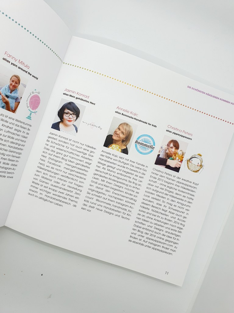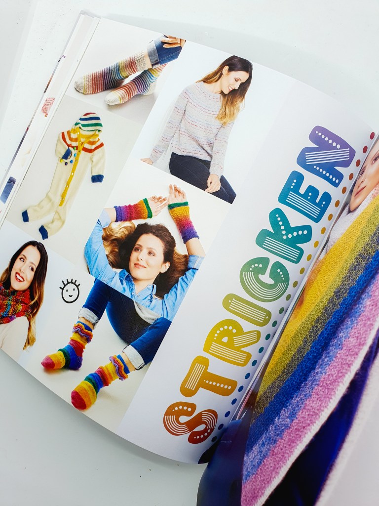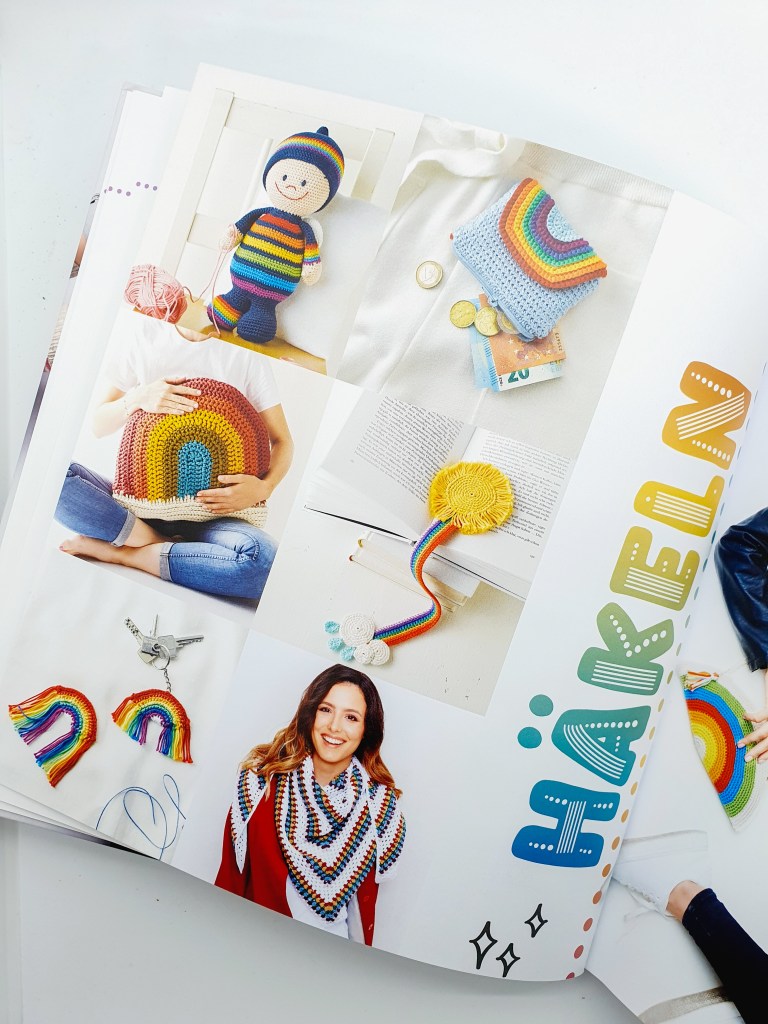 Und wenn ich sage „mitgeschrieben“ dann meine ich, dass ich Teil eines ganz wundervollen Autorinnen-Teams bin, das an dem Buch beteiligt ist. Dank der Mitwirkung von Melanie Czerny, Fanny Mitulla (Yarn Around The World), Jasmin Konrad (Mein gehäkeltes Herz), Annelie Kojic (Bommelie handmade for kids), Sandra Fischer (Strickfisch), Kristin Joél (Joel Joel handmade 4 friends), Imke von Nathusius, Judith Paus (Judith Jelena) und Sophia Wiik (Stichfest) und eben mir ist ein regenbogenbuntes, farbenfrohes und extrem vielseitiges Strick- und Häkelbuch entstanden, das einfach gute Laune macht.